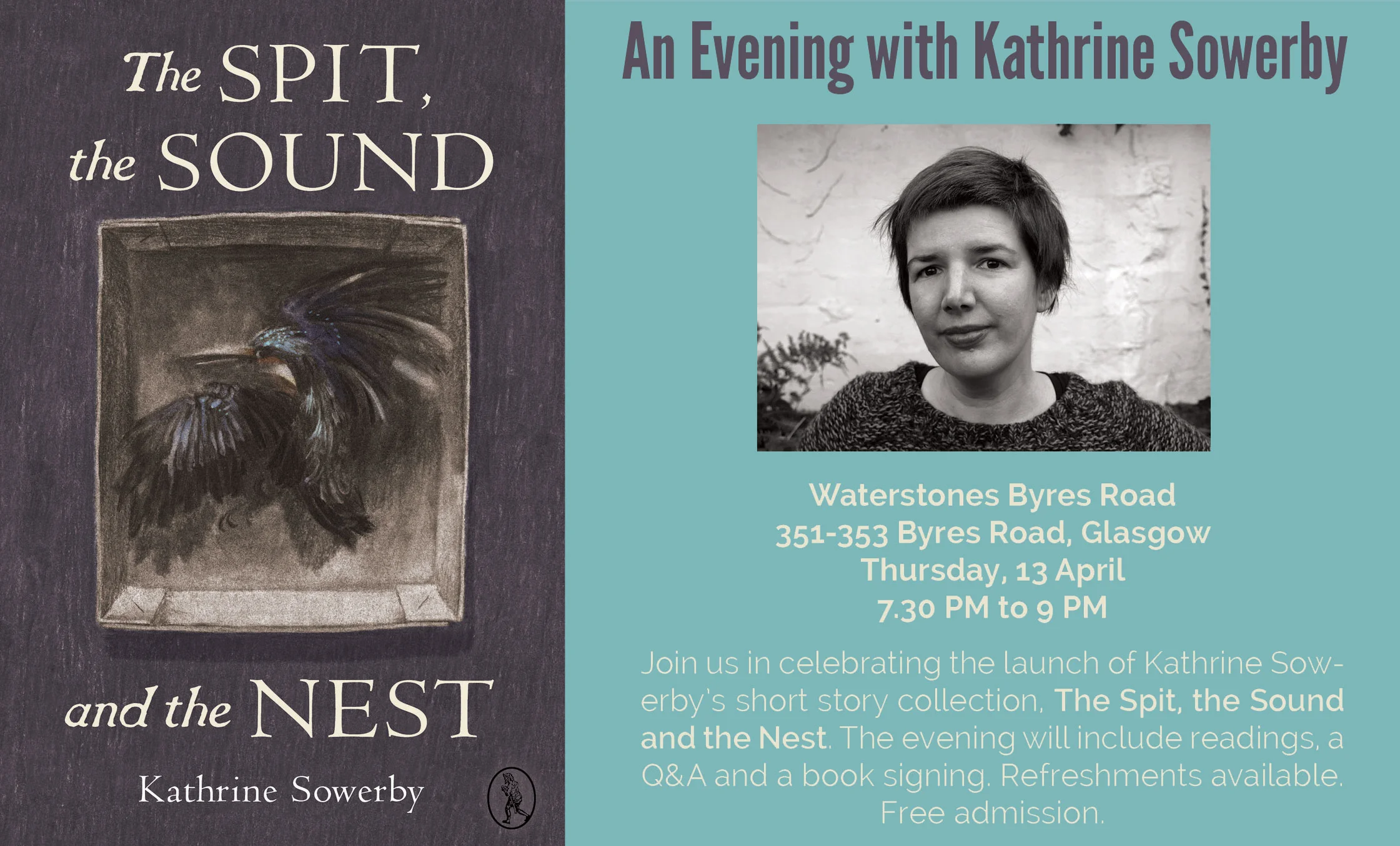 Join us in celebrating the launch of Kathrine Sowerby's debut short story collection: a triptych of novellas titled The Spit, the Sound and the Nest.